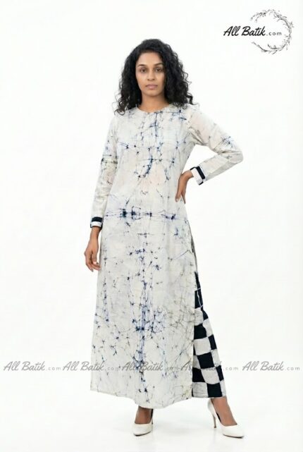 Black & White Sri Lankan Batik Cotton Kurtha & Pant Set
