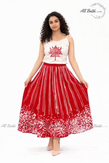 Red & White Maple Batik Cotton Skirt and Top – Adjustable Fit