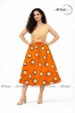 Refresh your wardrobe with this beige and orange batik cotton skirt and top set, made for comfort and easy style. Crafted from 100% breathable cotton, this lightweight two-piece outfit is perfect for warm weather and everyday wear.