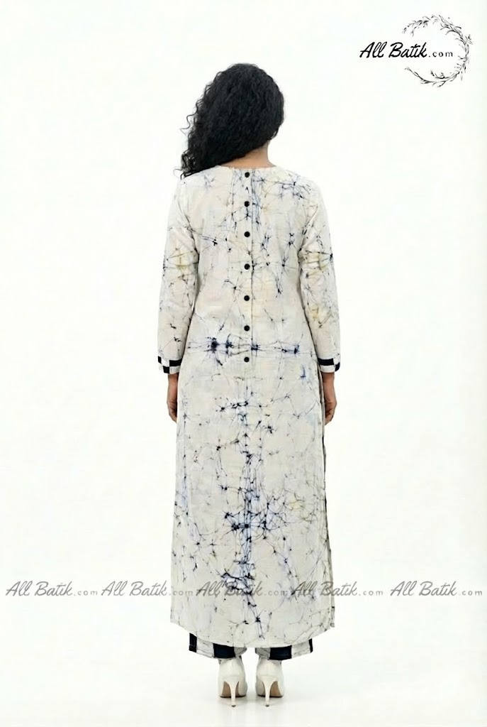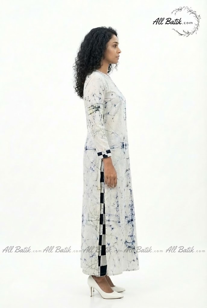 Black & White Sri Lankan Batik Cotton Kurtha & Pant Set