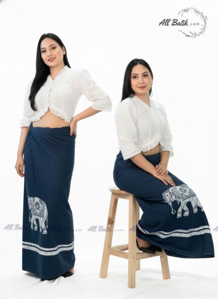 Sri Lankan Elephant Batik Sarong – Dark Blue & White Collection CAD $45.00